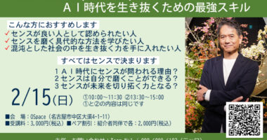 「知的感性(センス)の翼で羽ばたけ」 AI時代を生き抜くための最強スキル日 時 2026年2月15(日) 午前の部10:00-11:30 午…