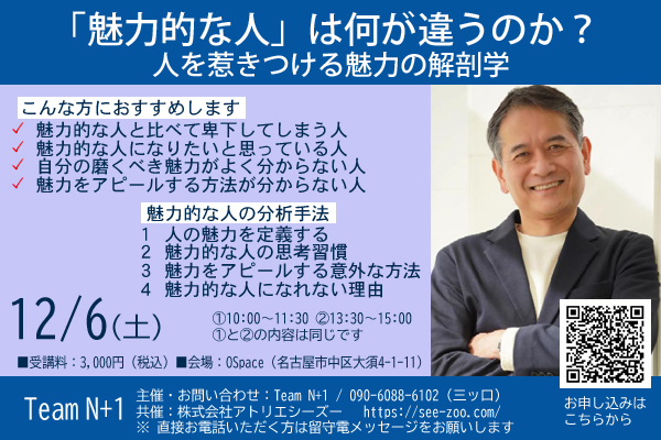 日 時 12月6 (土) 午前の部10:00-11:30  午後の部13:30-15:00